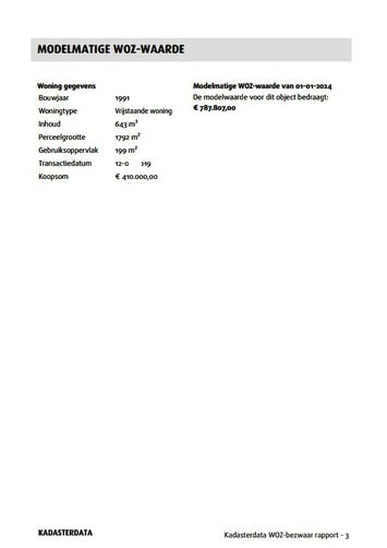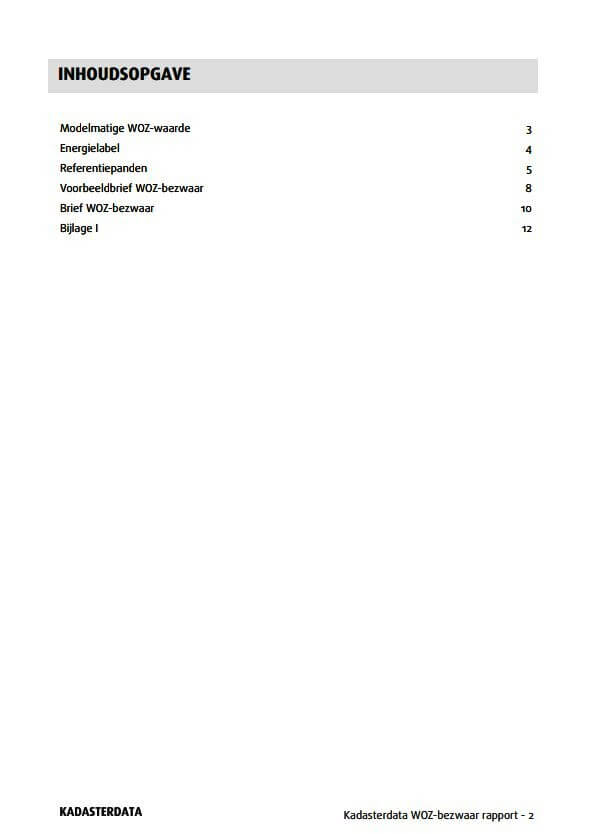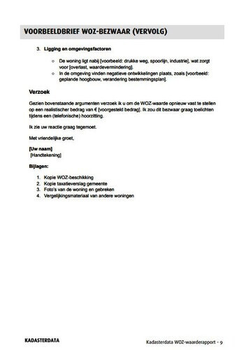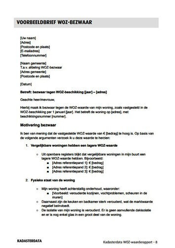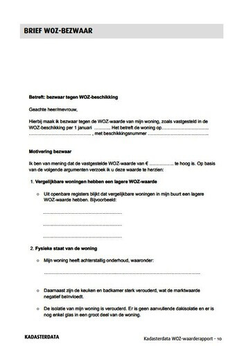Het WOZ-bezwaar rapport is hét rapport om u te helpen bij het bezwaar maken tegen een te hoge WOZ-waarde. Het rapport geeft u direct inzicht in de WOZ-waarde van uw woning en geeft de mogelijkheid om zelf GRATIS bezwaar te maken tegen een te hoge waardebepaling van de gemeente. Dit inclusief een voorbeeldbrief voor uw WOZ-bezwaar.