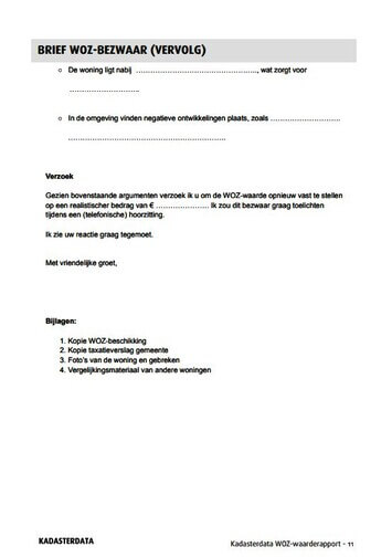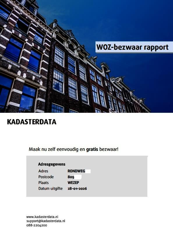 Het WOZ-bezwaar rapport is hét rapport om u te helpen bij het bezwaar maken tegen een te hoge WOZ-waarde van uw woning. Het rapport geeft u direct inzicht in de WOZ-waarde en geeft u de mogelijkheid om direct zelf gratis bezwaar te maken tegen een te hoge WOZ-waarde van de gemeente. Inclusief voorbeeldbrief voor uw WOZ-bezwaar. Telefonische helpdesk beschikbaar tijdens kantooruren.